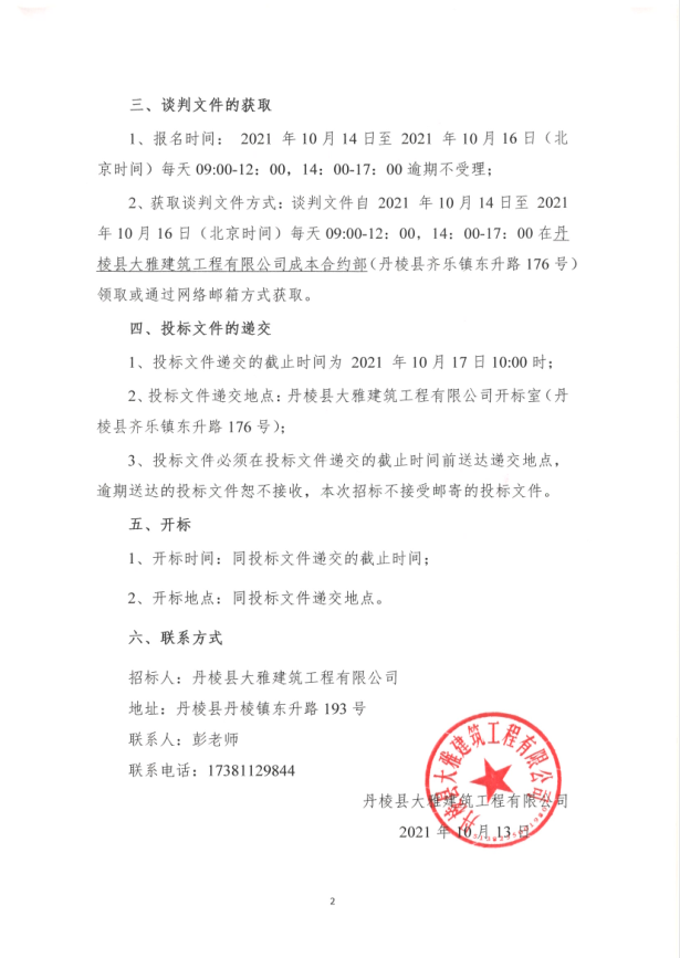 【大雅建筑公司】丹棱縣沿河慢行系統(tǒng)橋體下穿人行道排洪排澇改造工程(二標(biāo)段)專業(yè)分包競(jìng)爭(zhēng)性談判公告