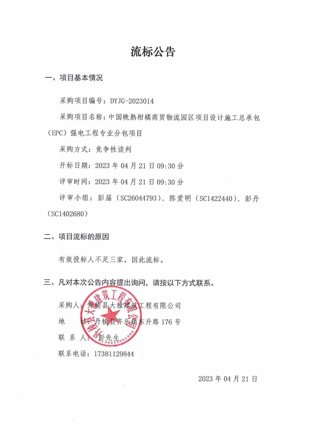 中國晚熟柑橘商貿(mào)物流園區(qū)項目設計施工總承包(EPC)強電工程專業(yè)分包項目流標公告