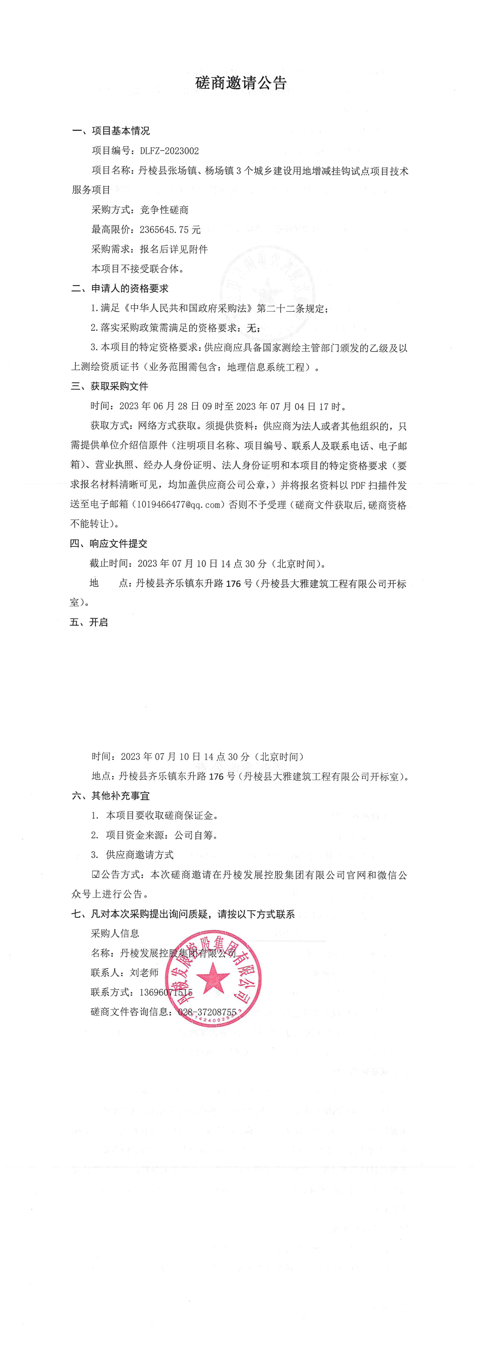 項目名稱:丹棱縣張場鎮(zhèn)、楊場鎮(zhèn)3個城鄉(xiāng)建設用地增減掛鉤試點項目技術服務項目磋商邀請公告