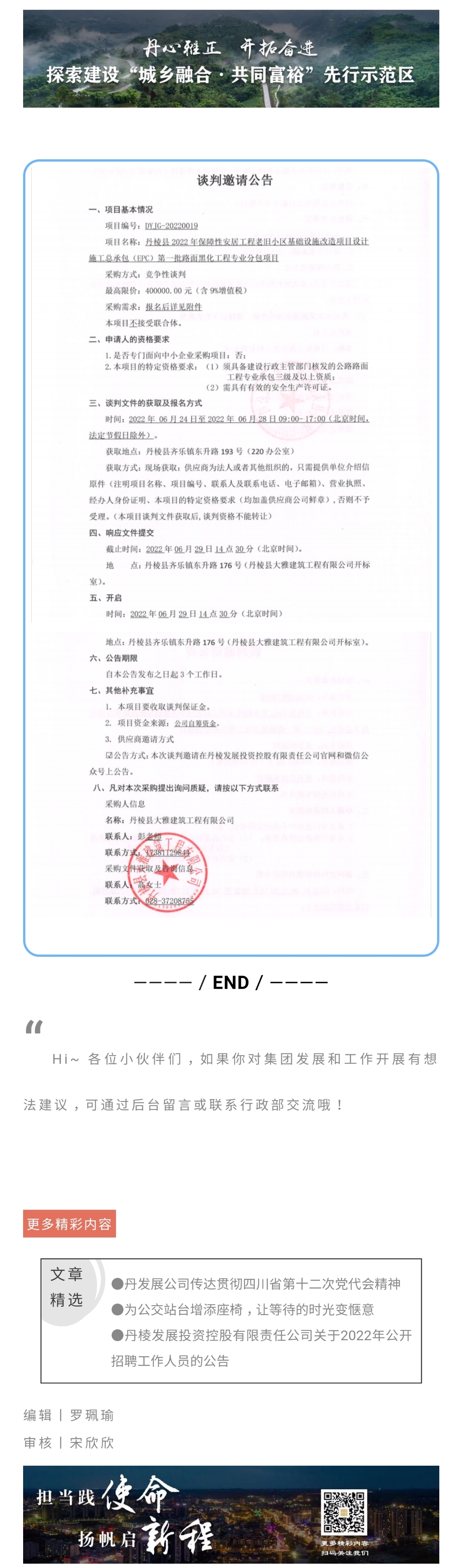 丹棱縣2022年保障性安居工程老舊小區(qū)基礎(chǔ)設(shè)施改造項(xiàng)目設(shè)計(jì)施工總承包(EPC)第一批路面黑化工程專業(yè)分包項(xiàng)目談判邀請(qǐng)公告