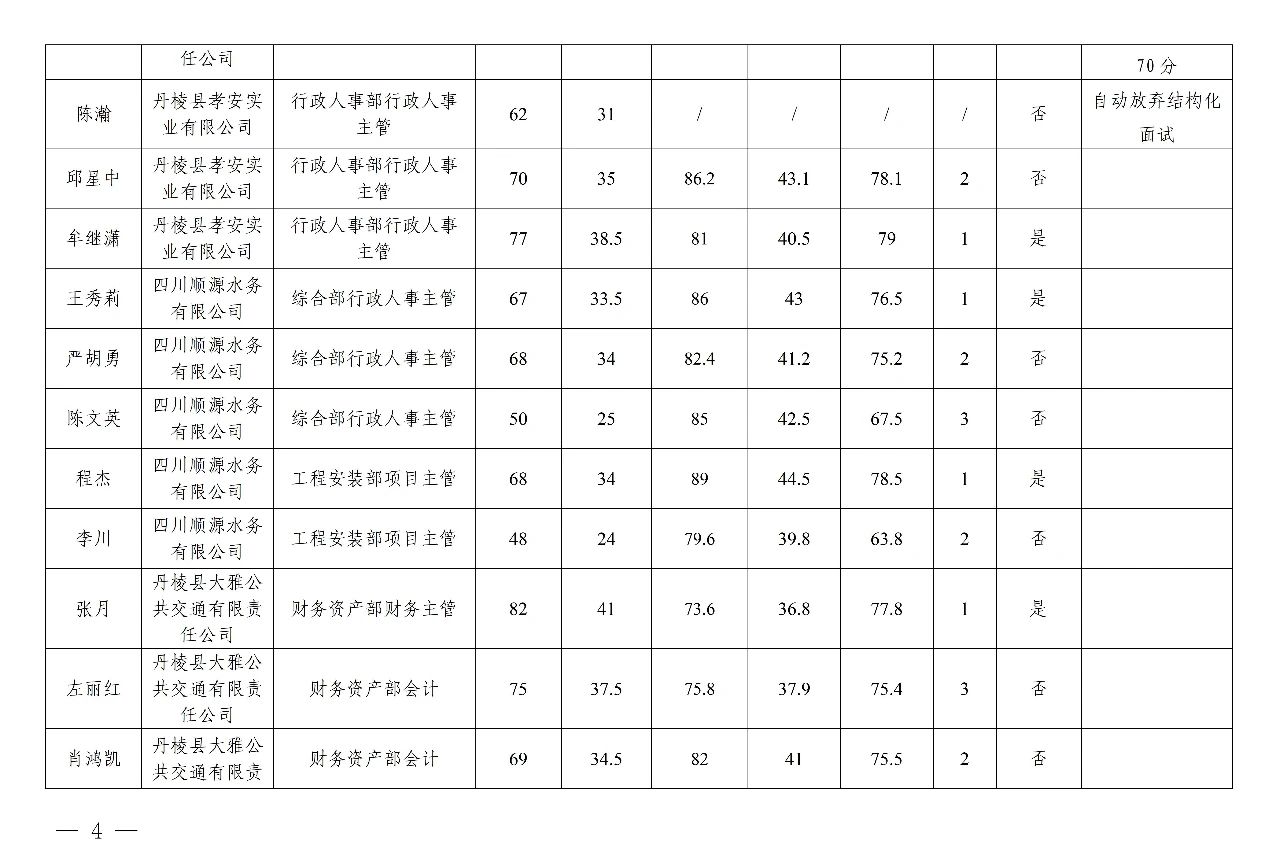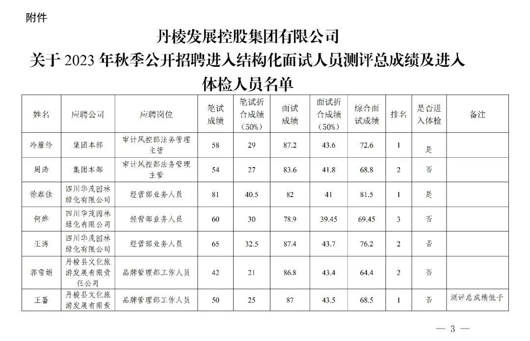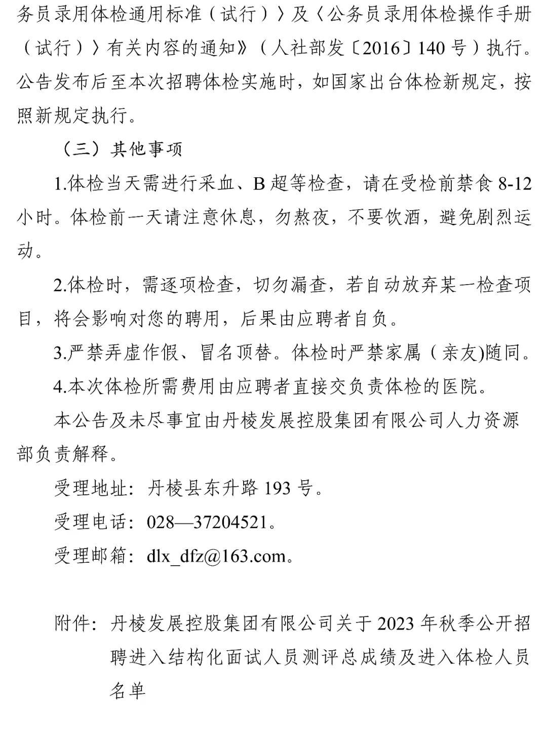 丹棱發(fā)展控股集團有限公司關(guān)于2023年秋季公開招聘進入結(jié)構(gòu)化面試人員測評總成績及進入體檢人員的公告