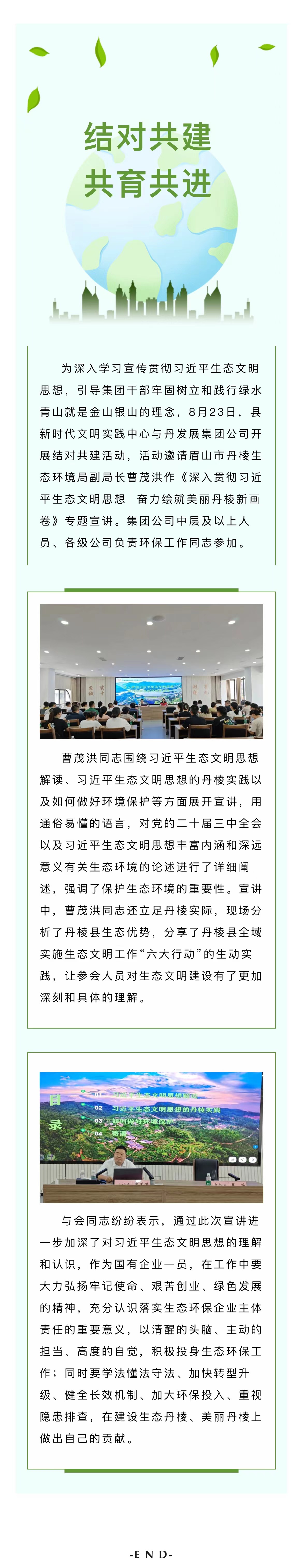 結(jié)對共建,共育共進(jìn)|縣新時代文明實踐中心與丹發(fā)展集團(tuán)公司舉辦習(xí)近平生態(tài)文明思想專題宣講活動