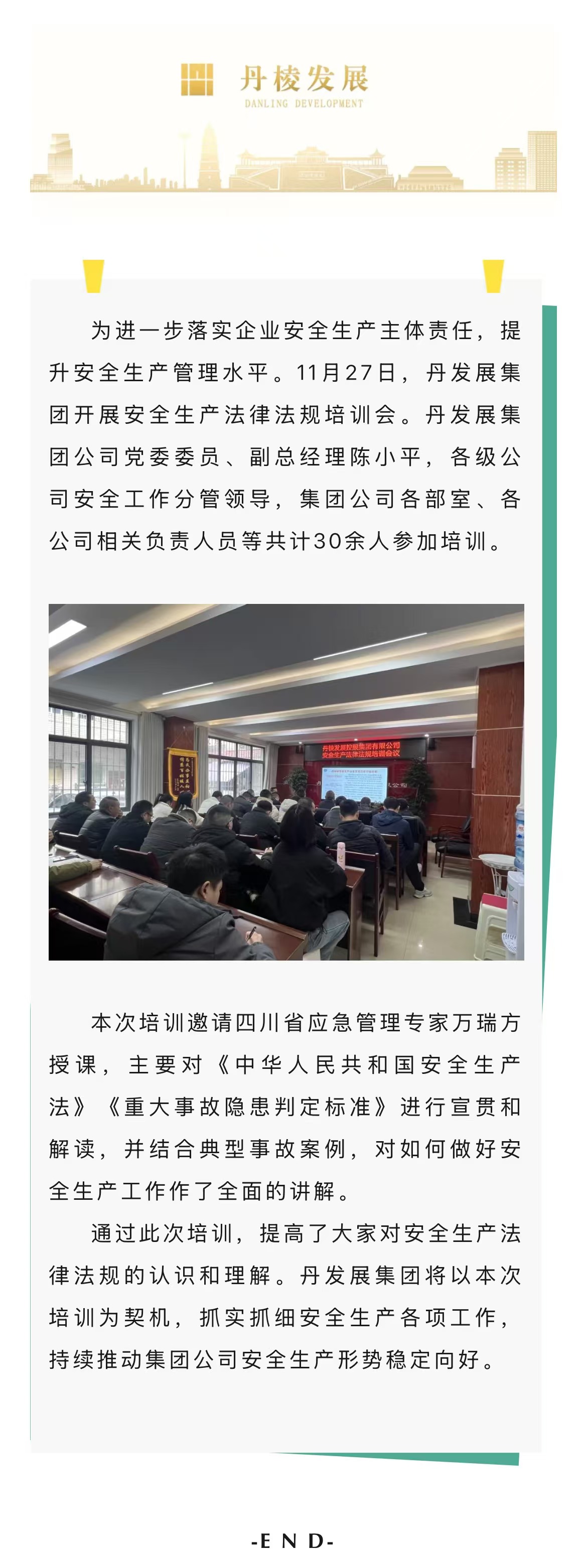 強(qiáng)化安全法律意識(shí),筑牢安全生產(chǎn)基石丨丹發(fā)展集團(tuán)公司開(kāi)展安全生產(chǎn)法律法規(guī)培訓(xùn)會(huì)