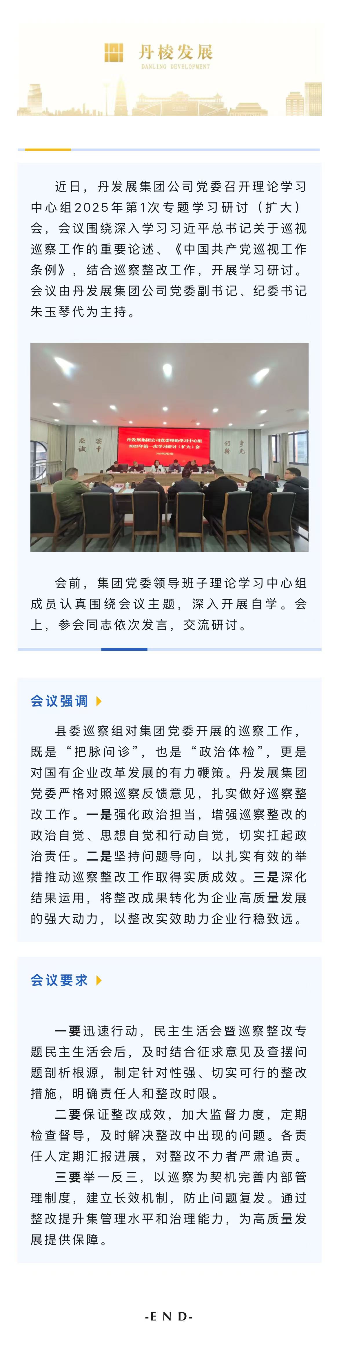 丹發(fā)展集團(tuán)公司黨委召開理論學(xué)習(xí)中心組2025年第1次專題學(xué)習(xí)研討(擴(kuò)大)會